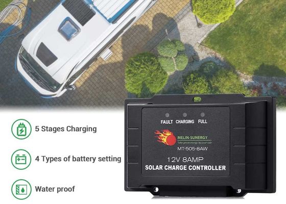 8A 12V 24V Ukuran Kecil IP65 Waterproof Smart PWM Solar Charge Controller