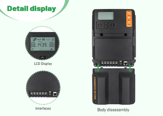 Layar LCD dari MPPT Solar Charge Controller memberikan informasi real-time tentang status sistem tenaga surya, termasuk tegangan baterai, arus pengisian, dan arus beban.Tampilan mudah dibaca dan memberikan indikasi yang jelas dari kinerja sistem.