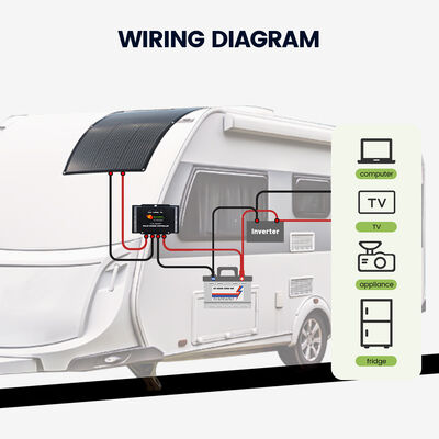 Salah satu fitur unggulan dari kit panel surya RV ini adalah disertakannya pengontrol pengisian daya surya tahan air berukuran sangat kecil dengan peringkat IP65. Pengontrol pengisian daya surya ringkas pintar dilengkapi dengan teknologi pengisian daya profesional untuk baterai asam timbal (AGM, GEL, WET) dan Baterai Lithium LiFePO4. Peringkat IP65 menjamin bahwa pengontrol pengisian daya cocok untuk penggunaan di luar ruangan dan memberikan ketenangan pikiran dalam berbagai kondisi cuaca.